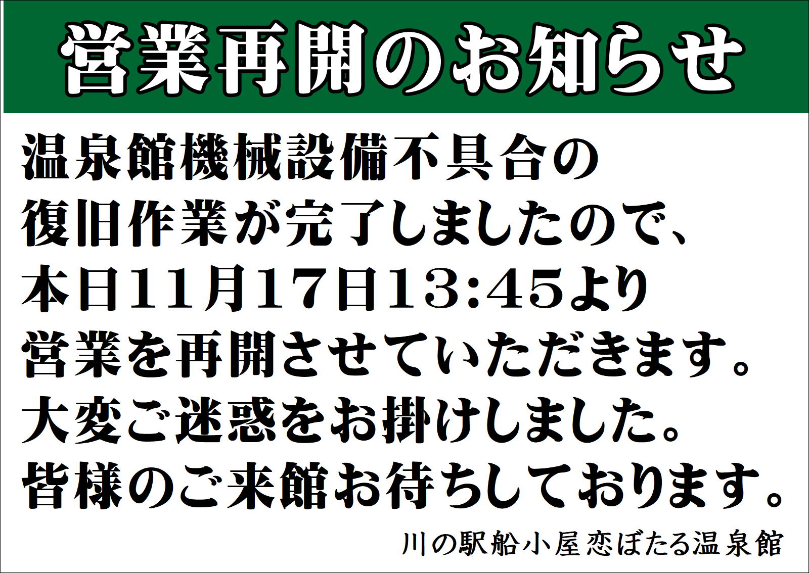 温泉館の営業についてのお知らせ